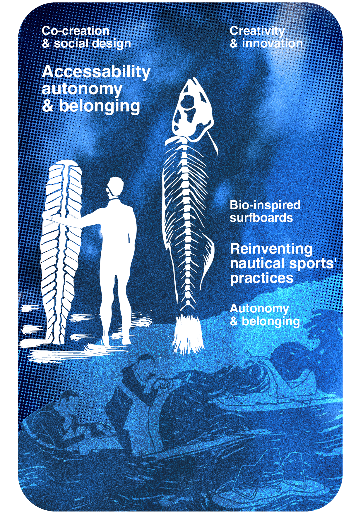 Glisse Libre merges art, tech and inclusion, co-designing adaptive water-sport boards with users, engineers and designers. Modular seating and stabilisers boost autonomy and attract visitors.